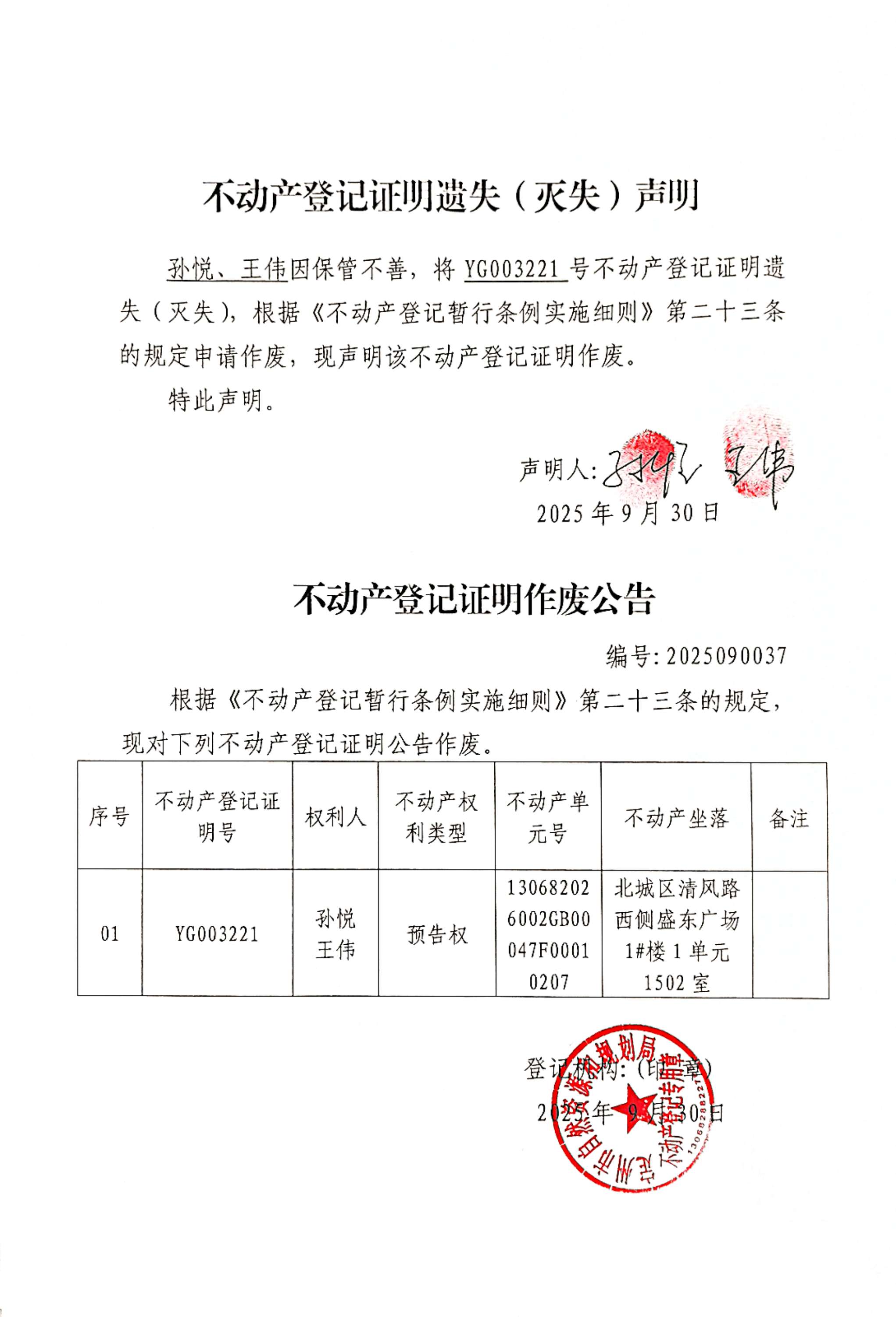 不動(dòng)產(chǎn)登記證明遺失(滅失)聲明