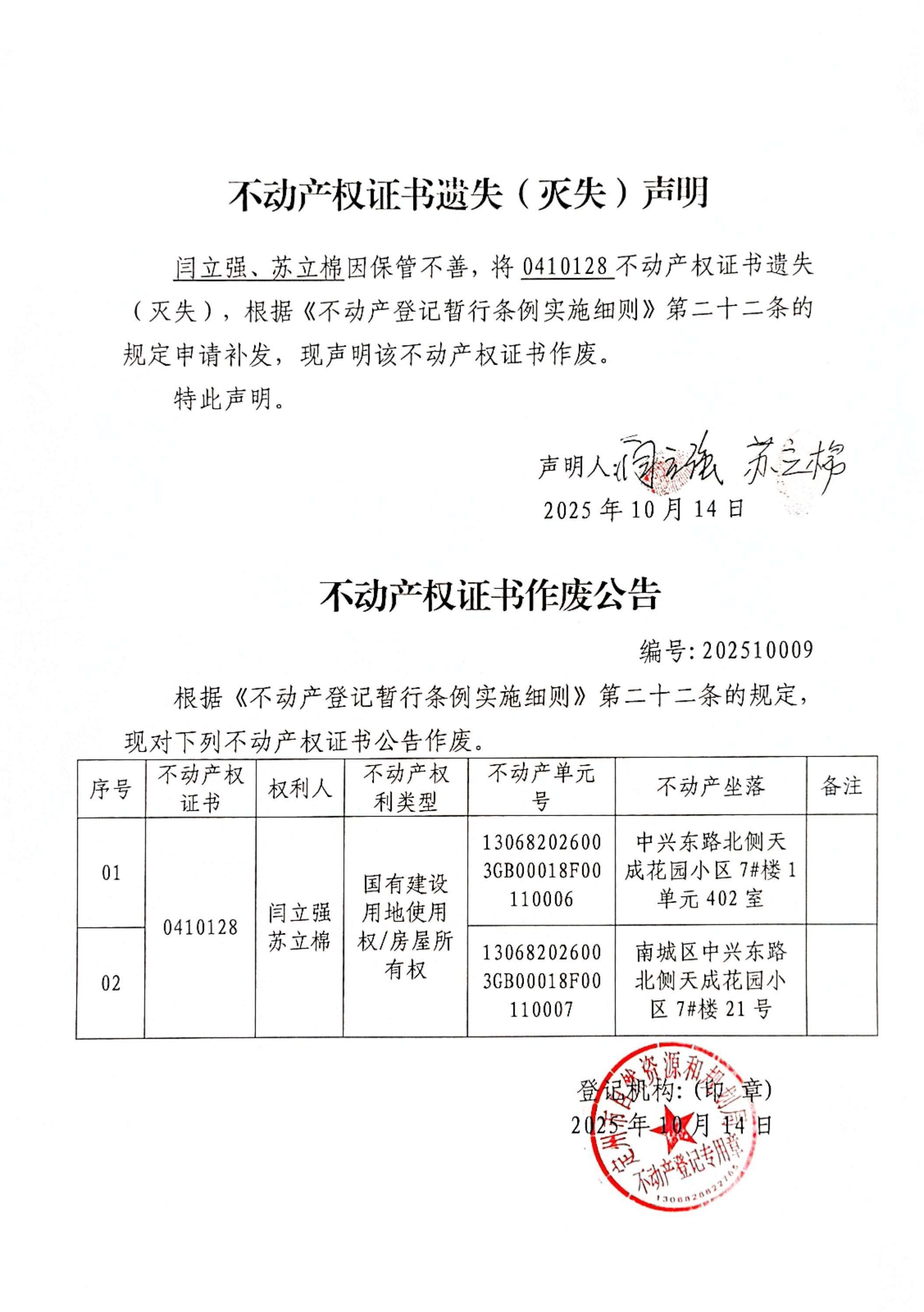 不動(dòng)產(chǎn)權(quán)證書(shū)遺失(滅失)聲明