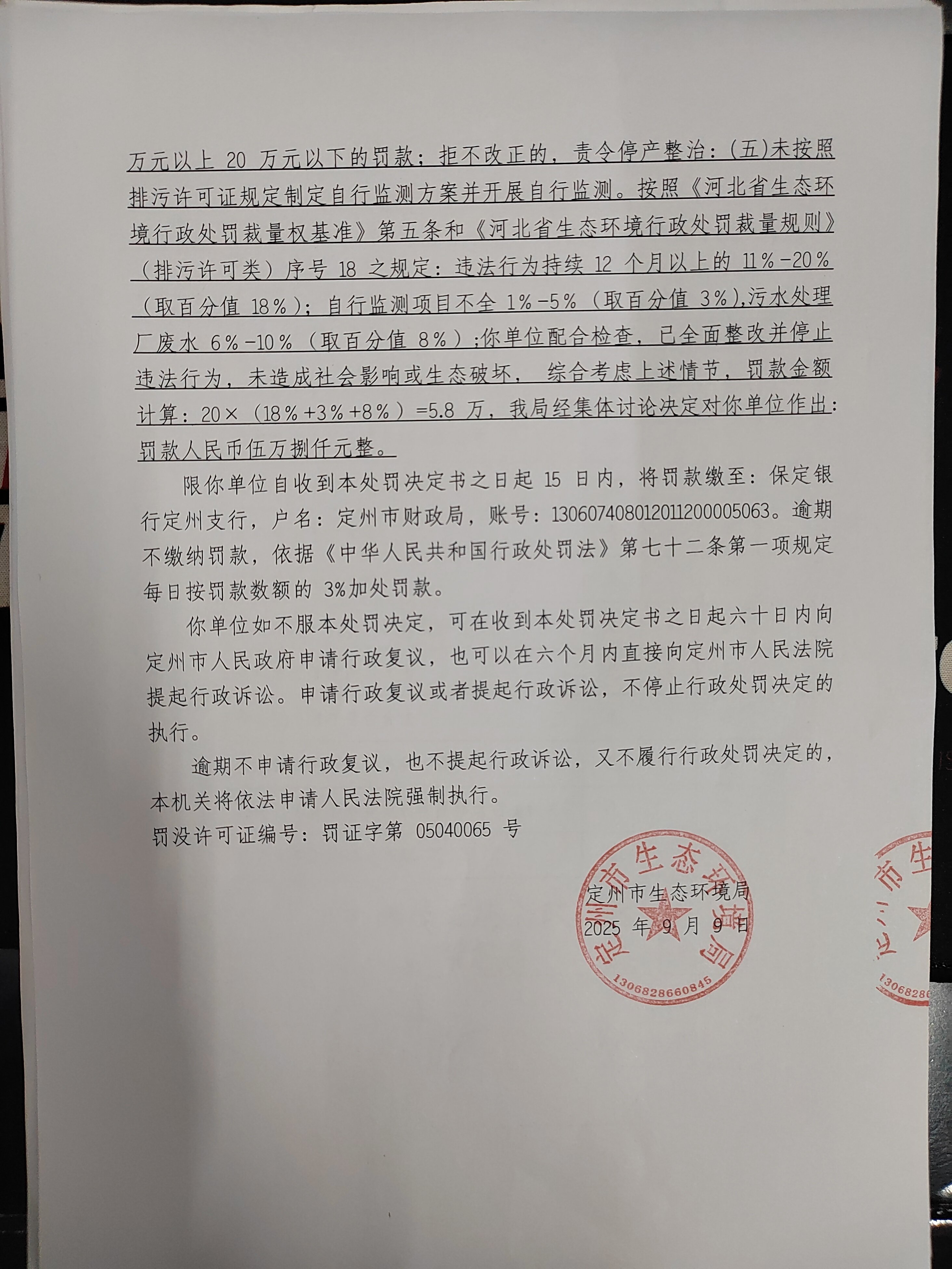 定州市生態(tài)環(huán)境局行政處罰決定書 定環(huán)罰決[2025]022號(hào)