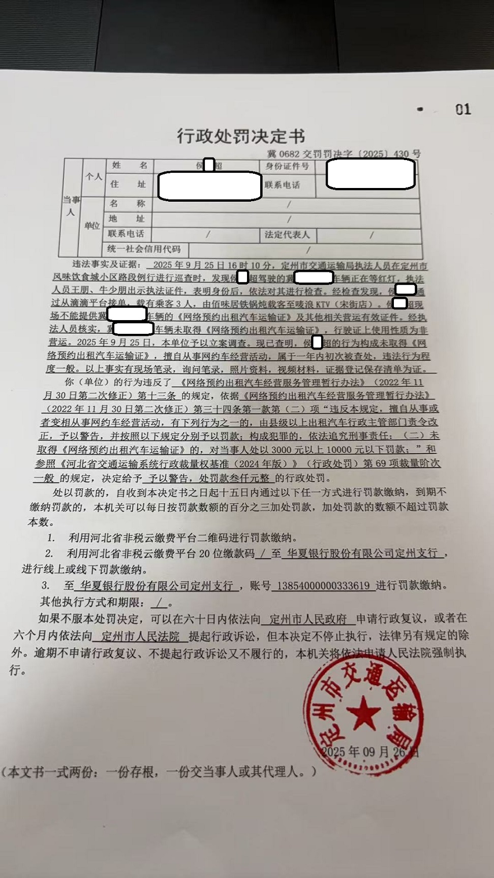 定州市交通運(yùn)輸局行政處罰決定書冀0682交罰罰決字〔2025〕430號