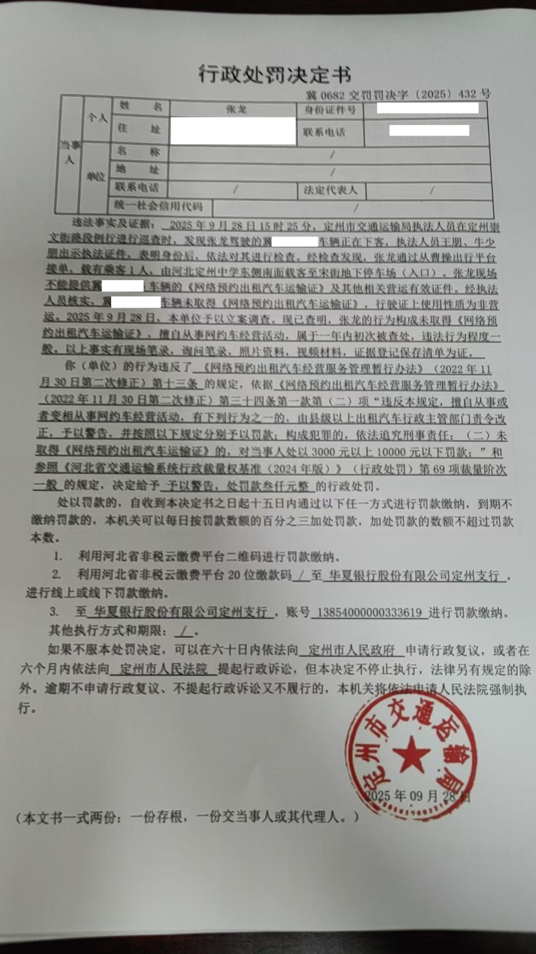 定州市交通運輸局行政處罰決定書冀0682交罰罰決字〔2025〕432號