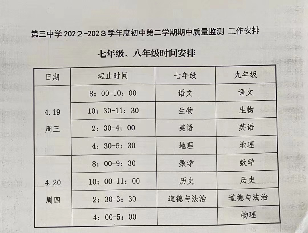 我校將組織全區(qū)2022-2023學(xué)年第二學(xué)期期中考試,通知如下: