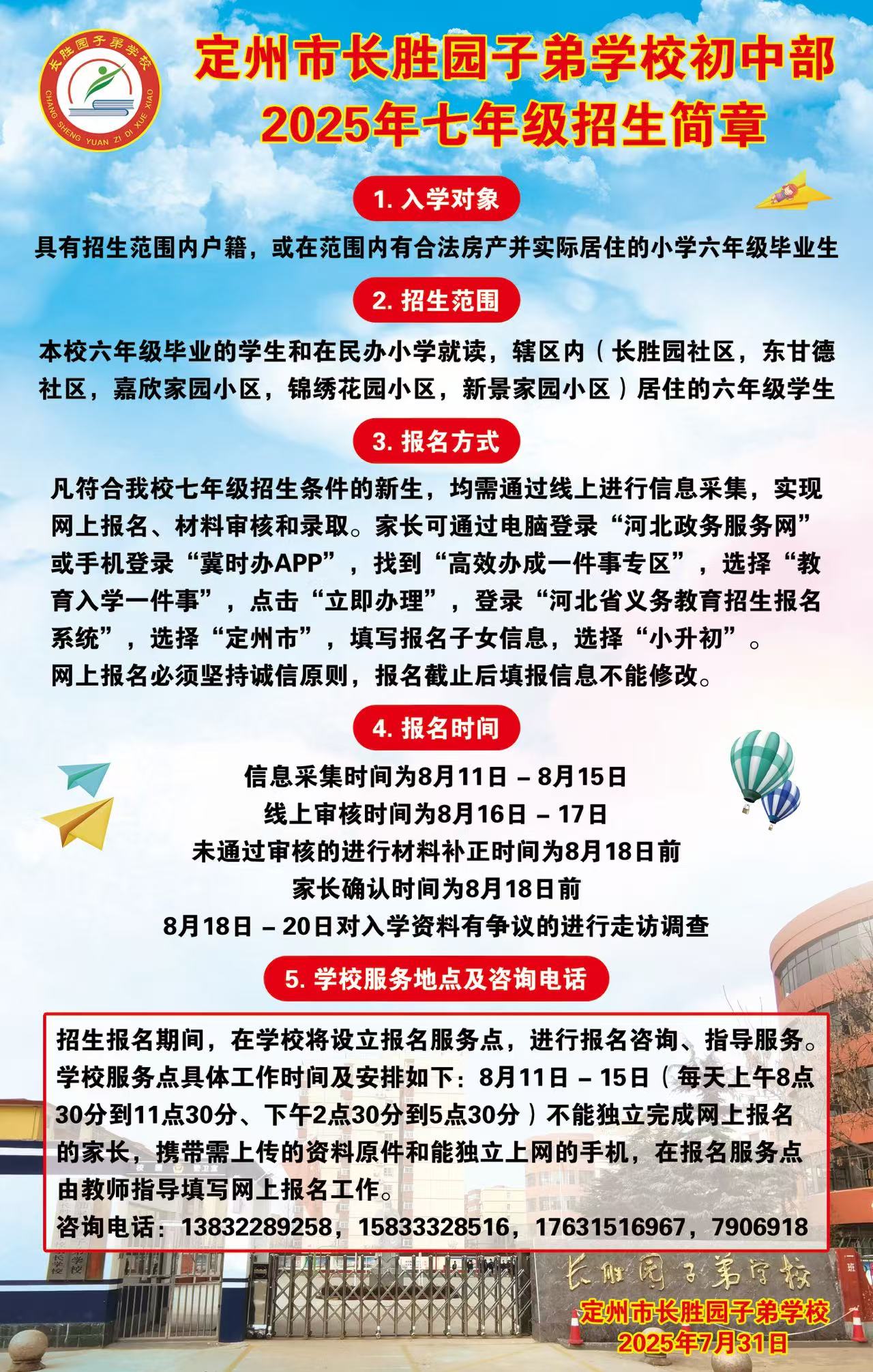 定州市長勝園子弟學(xué)校2025年招生簡章