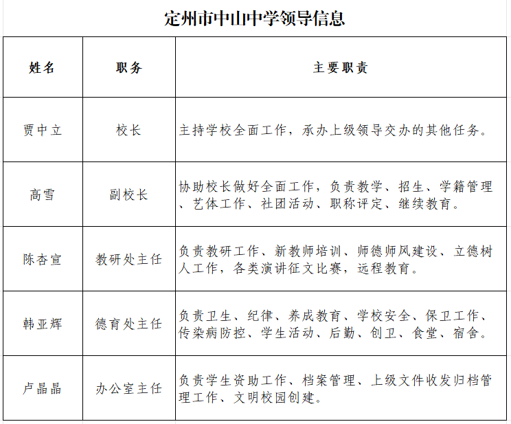 定州市中山中學(xué)2025年中層以上領(lǐng)導(dǎo)信息